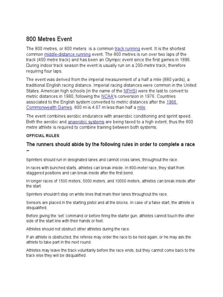 1500 Meter Start Line : 800 Metres Event Docx Track And Field Individual Sports - The race order is decided on time.